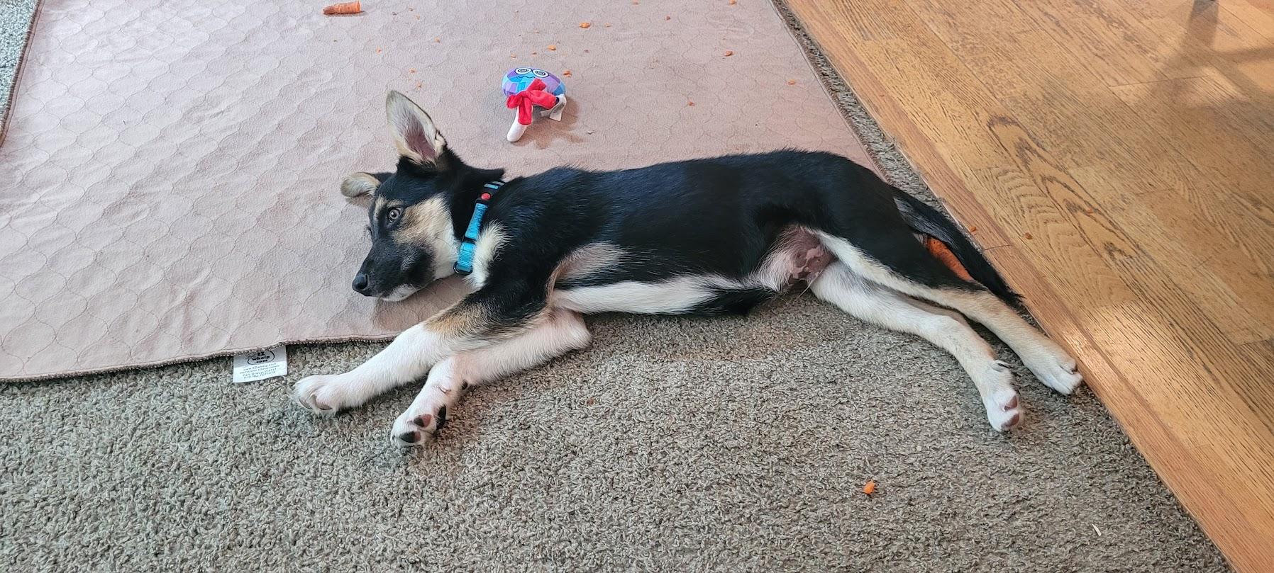 While he does have puppy energy, he also will just chill for good lengths of time with something to chew on, or a good long nap on the cool tile. Bo is a smart, happy & handsome boy. He'd love an active family, with or without kids and other fur siblings.